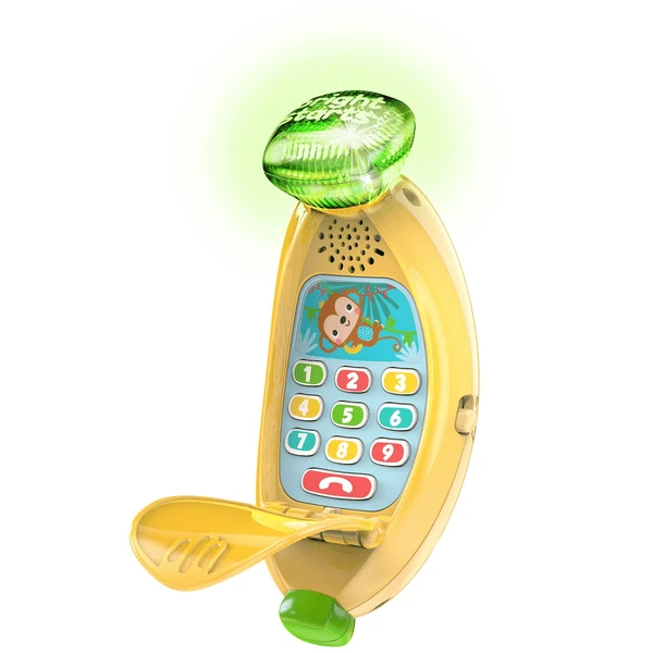 Het activiteitenspeelgoed “Babblin’ Banana” van B right Starts zal uw peuter boeien als hij mee brabbelt op de muziek. Druk op de knoppen om muziek en lichtjes te activeren, en hoor meer dan 100 melodietjes, zinnetjes en gekke geluidjes! Zo leert uw baby spelenderwijs cijfers, kleuren en woordenschat in 3 talen: Engels, Spaans en Frans. Dit muzikale on-the-go speeltje zal uw baby absoluut vermaken vanaf 6 maanden en ouder.