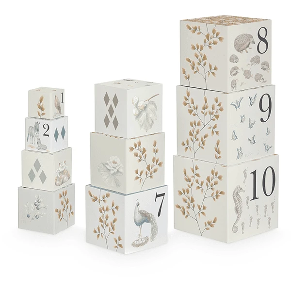 - De stapeldoosjes zijn er in een selectie van prachtig handgetekende dieren- en plantenillustraties en Cam Cam-prenten en symbolen