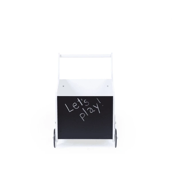 Dit leuke houten wagentje is ideaal om de favoriete speeltjes van uw kind te verzamelen en het staat nog mooi als decoratie in de woon- of speelkamer! Ook de motoriek kan geoefend worden op het krijtbord dat vooraan het karretje met de mooiste tekeningen versierd kan worden.