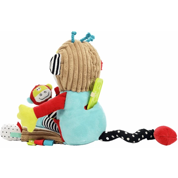 De kleine apenfamilie nodigt de kinderen uit op een ontdekkingsreis. Veel activiteiten bevorderen de coördinatie, de motoriek en het logisch begrip. Ringen op de arm, kleurrijke linten en verschillende oppervlakken stimuleren het aanraken en voelen. De eerste rol speelt met verantwoordelijkheid en zorg voor de nakomelingen kan worden gespeeld en de kleintjes worden zelf apenmoeders of -vaders.