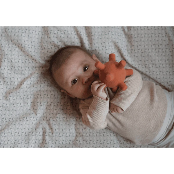 De bal heeft noppen die zelfs voor zeer kleine handen een goede grip bieden. Alle randen zijn zacht, wat helpt bij pijnlijk tandvlees en tegelijkertijd de tastzin stimuleert. Een geweldig product voor de ontwikkeling van de fijne motoriek van het kind.