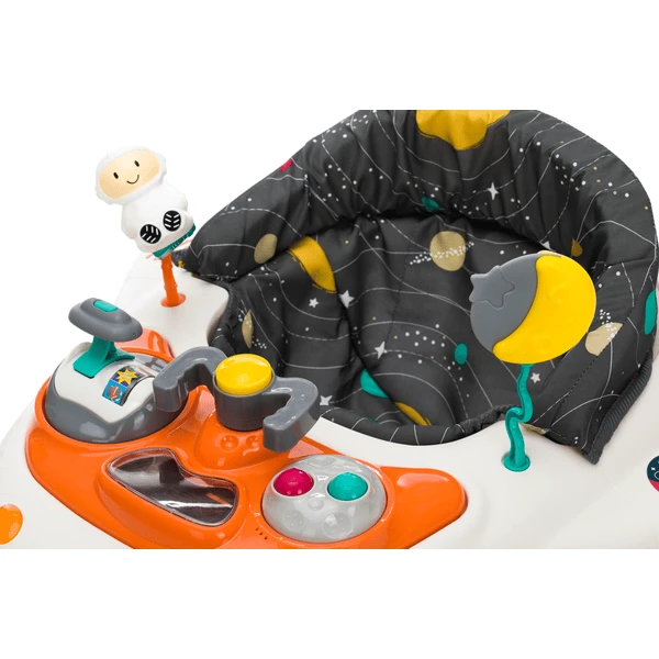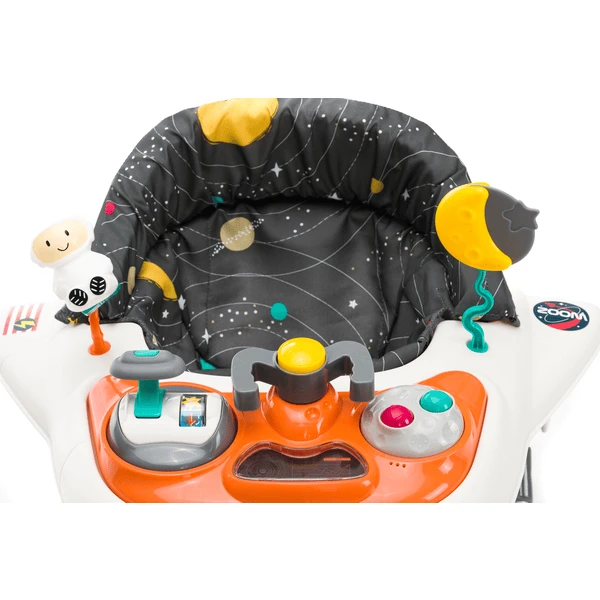 Deze kleurrijke wandelaar sensibiliseert en ondersteunt de motoriek van uw kind totdat hij of zij helemaal alleen kan lopen. Met de 3-wegs instelbare hoogte-functie kan de lengte van uw kind perfect worden aangepast aan de wandelaar. Met het elektronische speelapparaat (zonder batterijen) zal uw kind zich niet vervelen, zelfs niet tijdens het “leren lopen”.