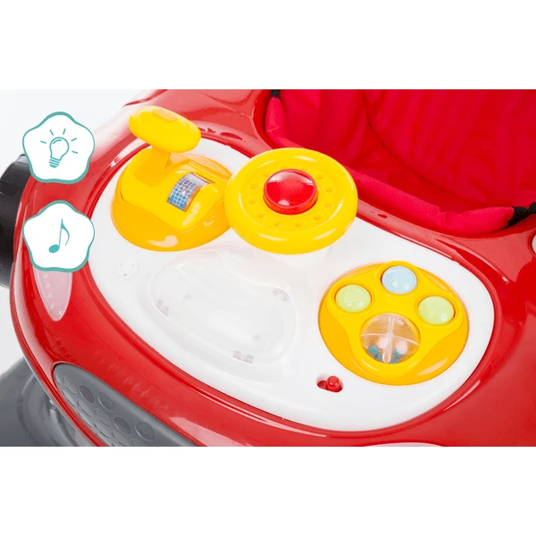 Met de 3-voudig in hoogte verstelbare functie kan de grootte van je kind perfect worden aangepast aan de loopwagen. Met de elektronische speeltoestellen (exclusief batterijen) zal je kind zich zelfs tijdens het “leren lopen” niet vervelen.