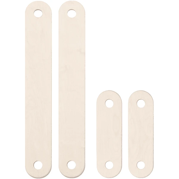- De POLKU evenwichtsbalk is verkrijgbaar in drie verschillende sets – S, M en L, die bestaan uit verschillende balken en aansluitingen