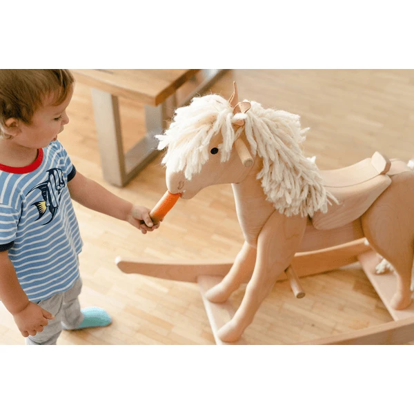 “Jolly Popcorn’ is de naam van dit lieve hobbelpaard Haflinger, gemaakt van hout met veel aandacht voor detail. Hij ontving de Duitse Design prijs voor houten speelgoed en wordt tot op de dag van vandaag beschouwd als “het mooiste schommelpaard ter wereld”. Met veel plezier en verbeelding wordt uw kind vertrouwd gemaakt met het onderwerp dieren, want met de uitgebreide accessoires* wordt “Jolly Popcorn” geborsteld, kunnen manen en staart worden gekamd of gevlochten en willen de oren geknuffeld worden. En misschien wil “Jolly Popcorn” achteraf een kleine traktatie?