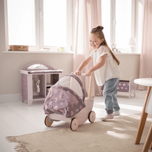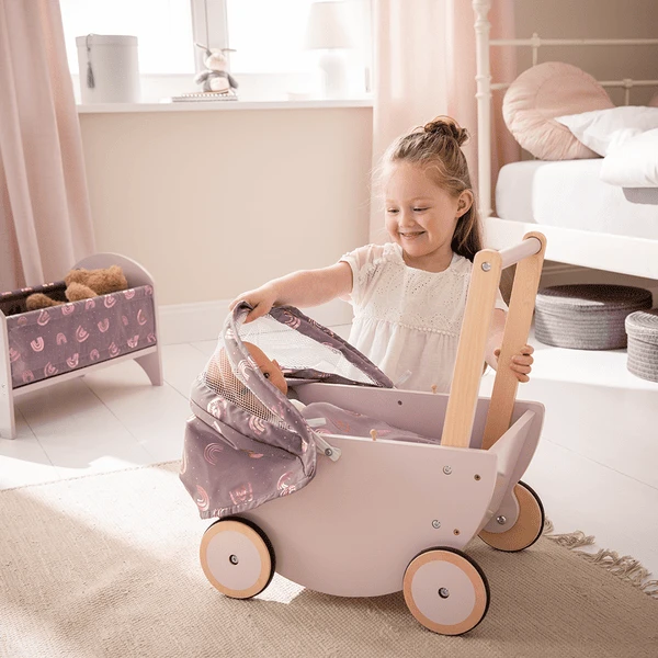 howa Poppenwagen “Regenboog” van hout met opvouwbare kap