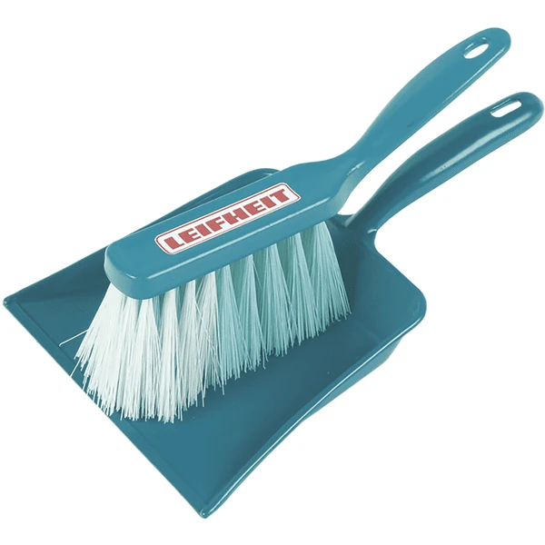 Zo kun je mama en papa helpen in het huishouden: Met je blik en veger kun je vuil opvegen. Met de handveger op het blik, en hup! Weg ermee!