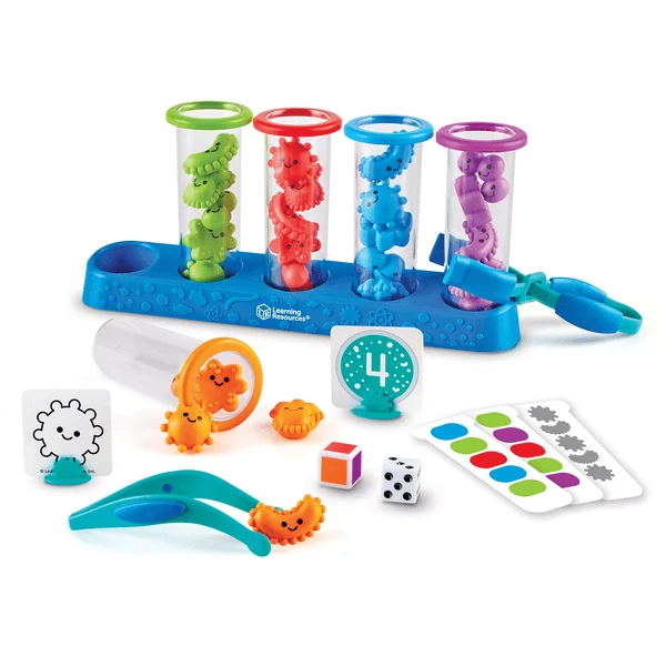 - Elk sorteeravontuur in dit STEM-speelgoed voor kinderen introduceert ook de fijne motoriek op de basisschool met behulp van 2 gespecialiseerde fijne motorische hulpmiddelen – knijp in de klem om de reageerbuis op te tillen en versterk de handspieren, of knijp in de pincet om bacteriën op te pakken en werk aan precisie!