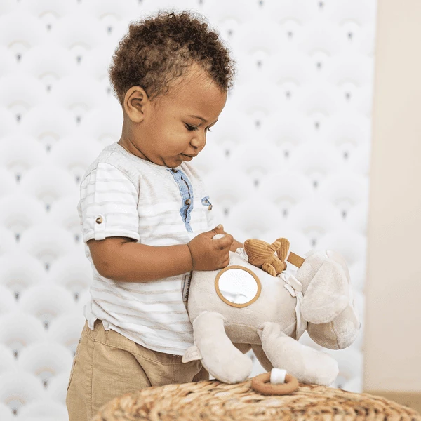 - Voorzichtig: Verwijder het speelgoed zodra het kind probeert op handen en voeten te gaan staan of te kruipen, om elk risico op letsel door verstrikking te voorkomen.