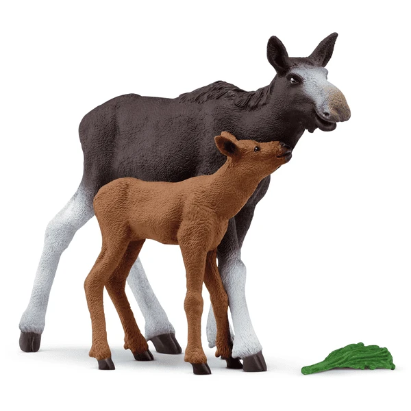 - De edele elandkoe zorgt liefdevol voor haar kleine kalfje. Ze geeft het meerdere keren per dag melk