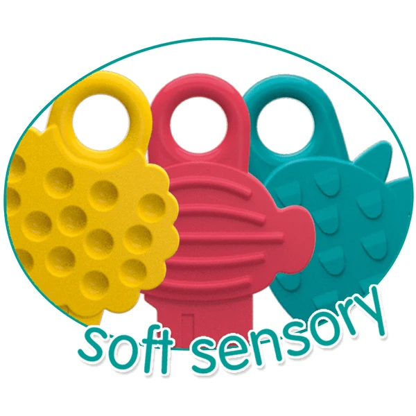 Met deze set zintuiglijke speelsleutels uit de Tiny Talents-productlijn van SES Creativ e is de vraag passé! Nu hebben de kleintjes al hun eigen spannende sleutels die ze stukje bij beetje kunnen ontdekken. Raak ze aan, speel ermee, knabbel of bijt erop – de 3 kleurrijke toetsen met verschillende texturen zorgen voor bijzonder veilige, spannende en zintuiglijke ontdekkingsmomenten!
