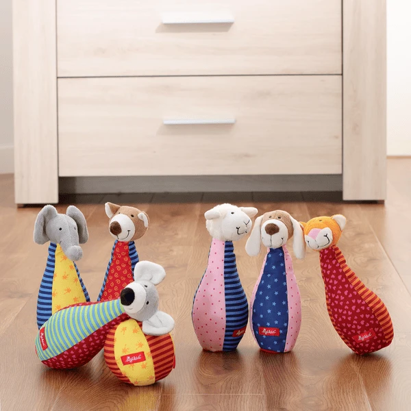 Met behulp van een kegelspel kan baby zijn wereld veroveren. Het eigenlijke kegelspel beheersen kinderen zo rond de 10-12 maanden. De losse kegels en de bal zorgen al veel vroeger voor veel pret.