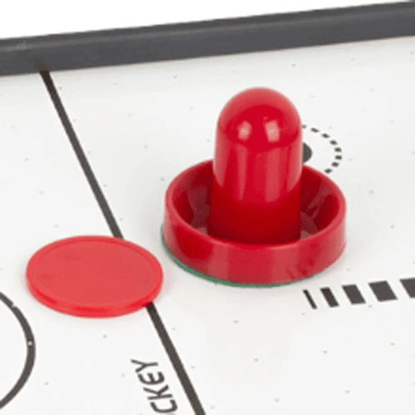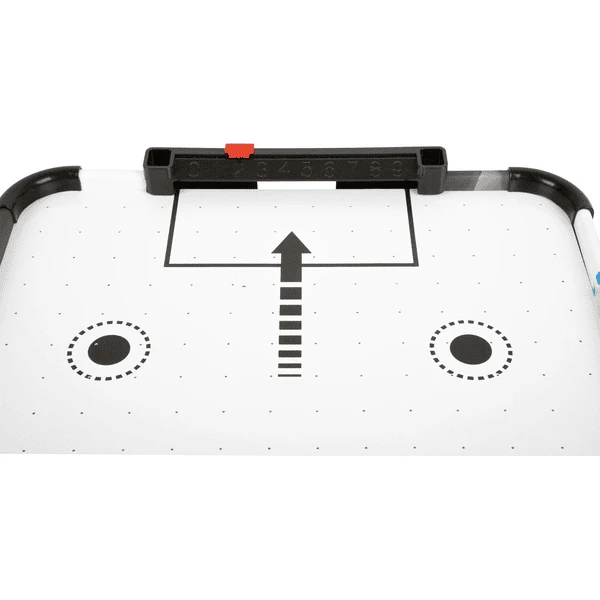 Met deze compacte airhockeytafelverhoger zijn vaardigheid en snelheid een vereiste. Een 12V krachtige blower laat de lucht door de vele kleine gaatjes omhoog stromen en de air hockey puck glijdt vederlicht over het gladde speelveld. Viltglijders onder de drukkers voorkomen krassen op het speeloppervlak en de 220-240V aansluiting zorgt voor extra Power ! In spannende spellen voor twee spelers worden de hand-oog coördinatie en het reactievermogen van de spelers op de proef gesteld. Na het spelen kan het compacte speelveld worden opgeborgen om ruimte te besparen. Ook ideaal om mee te nemen! Dit airhockeyspel garandeert een snel spel met actie en plezier in een kleine ruimte. Hiermee haal je de arcadepret in huis! Wie zal het volgende air hockey toernooi organiseren?