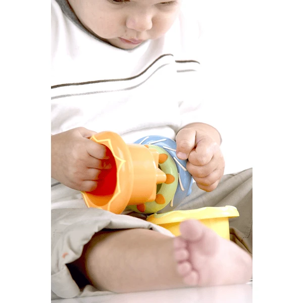- Laat uw kind zien hoe hij de bekers moet stapelen – en omstoten!