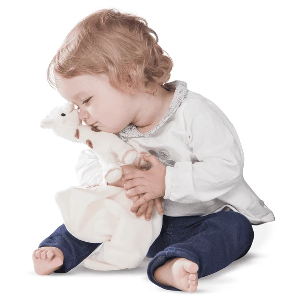 Zachte kleuren en een bijzonder zacht oppervlak kalmeren jouw baby. Het speelgoed is lichtgewicht en is gemakkelijk vast te pakken. De knuffeldoek is gemaakt van twee verschillende stoffen om verschillende aanraaksensaties te creëren.